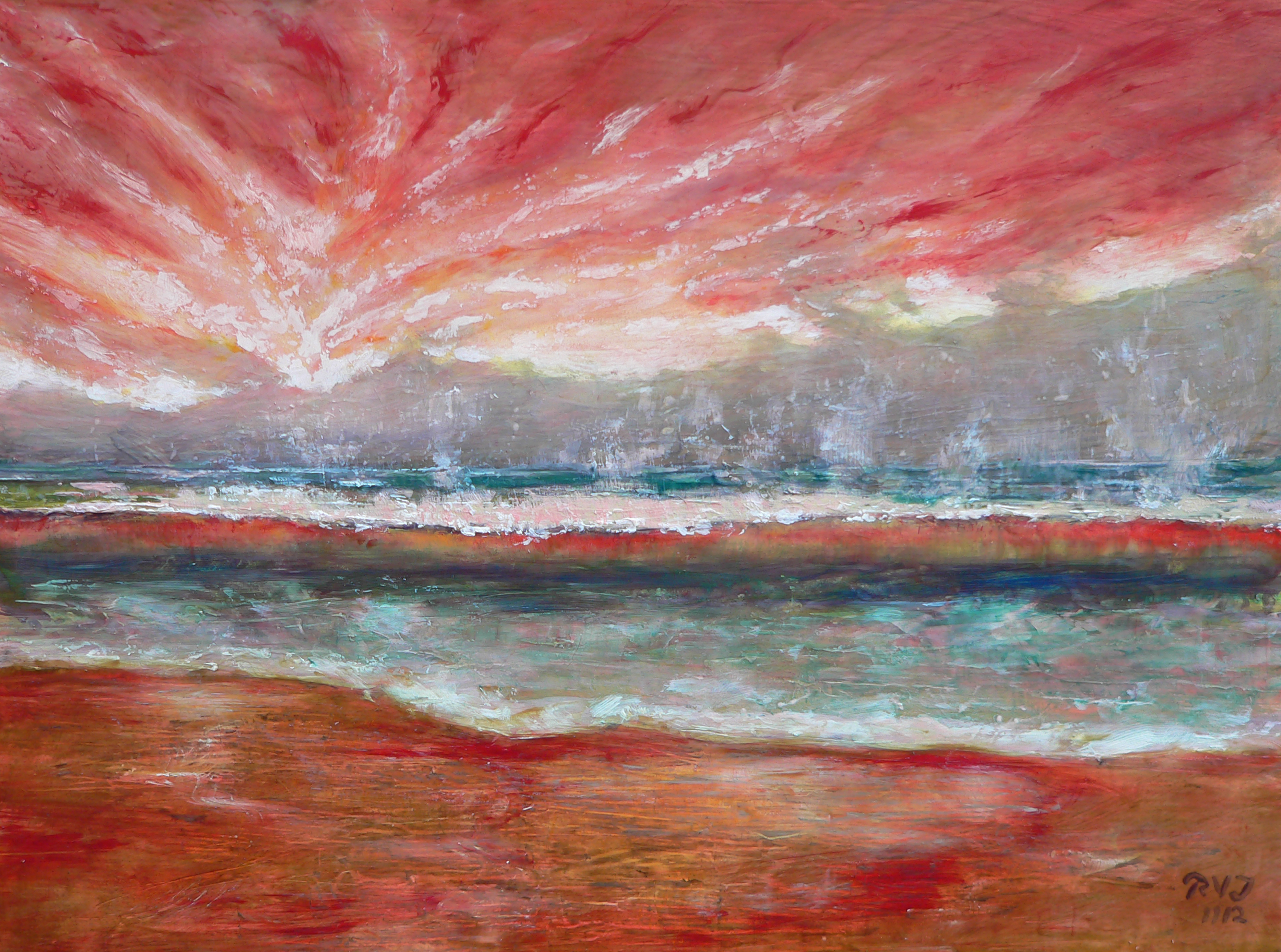 I will donate all proceeds from the sale of this work Red Dawn to struggling artists on the Jersey Shore. Also, until years end, 50% of the profit from any work that I sell on my websight RVJart.com will go to my fellow New Jersey artists as well. Help me to help them.