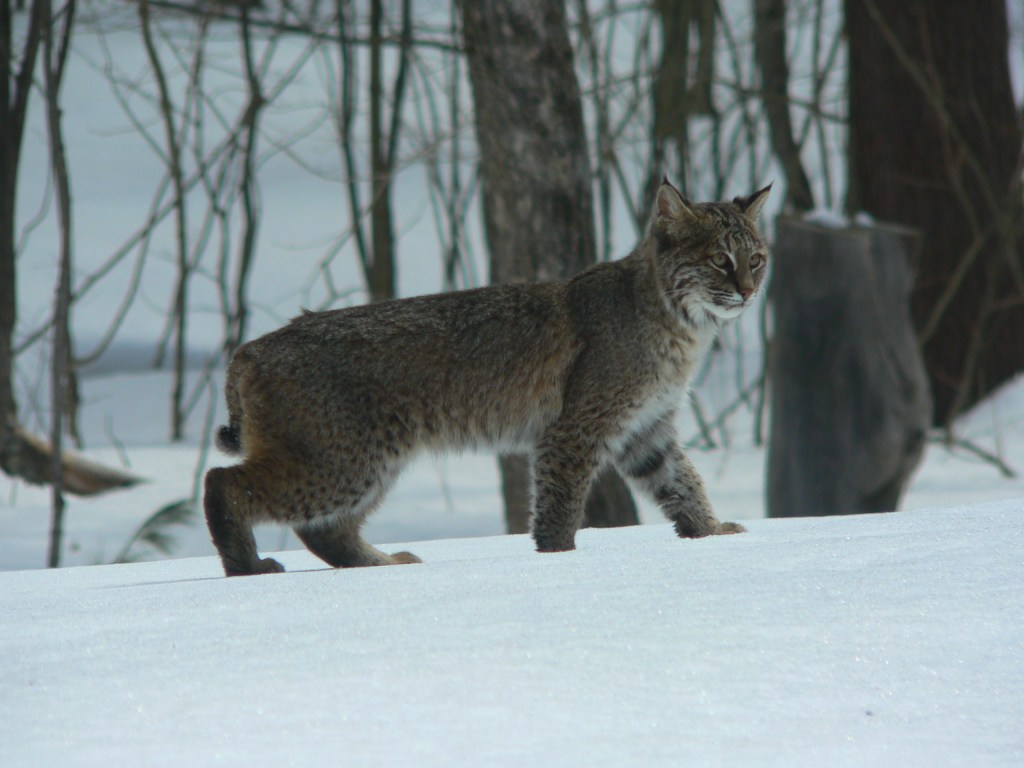A bobcat visited us for lunch yesterday. You will notice the sculpture Transience in the background of this photo. Close enough to make these photos from my kitchen. This is the closest that I have been to a  cat in the wild. It waited around for 20 minutes or so looking for a squirrel or mouse (or our dog!) for lunch and then, not having any luck, moved on…